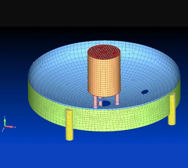 Statische und erdbebentechnische (ASCE 7) Berechnung der Unterkonstruktion nach AISC 360 und Teile des Behälters nach ASME VIII 2019 sowie Verankerung nach ACI 318