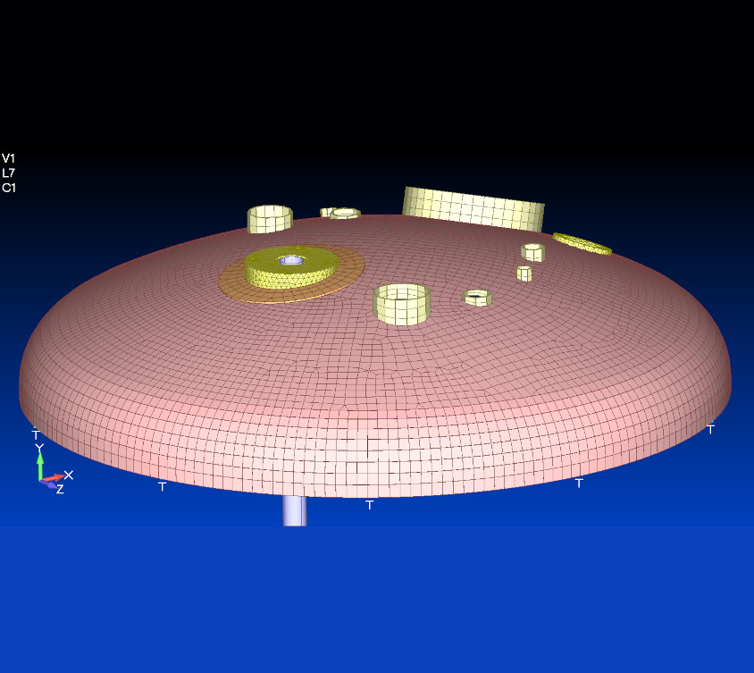 Structural calculation and proof of the vessel on brackets and with baffles anchored in the top head acc. to ASME 2017 (FEA) under consideration of mixer loading