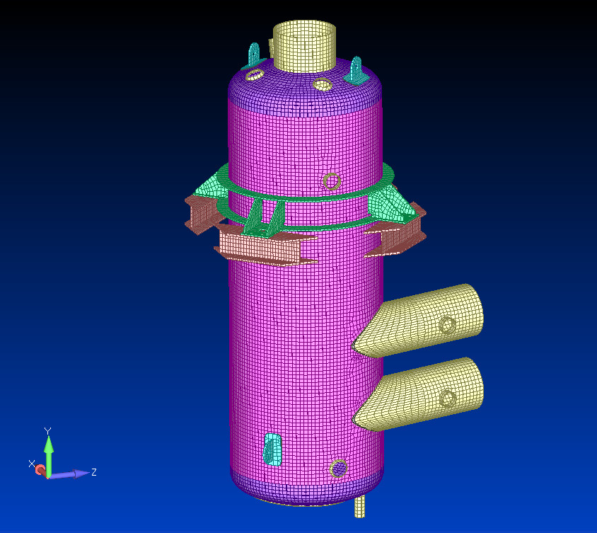 Structural calculation and proof of the vessels on brackets with additional horizontal supports acc. to AD2000 Merkblätter under consideration of wind/snow acc. to DIN EN 1991, earthquake acc. to DIN EN 1998 and nozzle loads